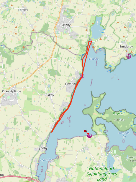 Vejret: Masser af sol, næsten ingen vind inde under land, vind fra syd på ca. 5 m/s.